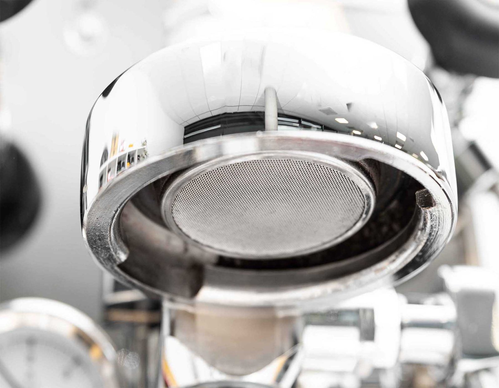 Αντικαταστήστε το πλέγμα μέσα στο portafilter με ένα λεγόμενο «τυφλό» φίλτρο χωρίς τρύπες (θα το βρείτε στο πλήρες σετ της καφετιέρας σας).
