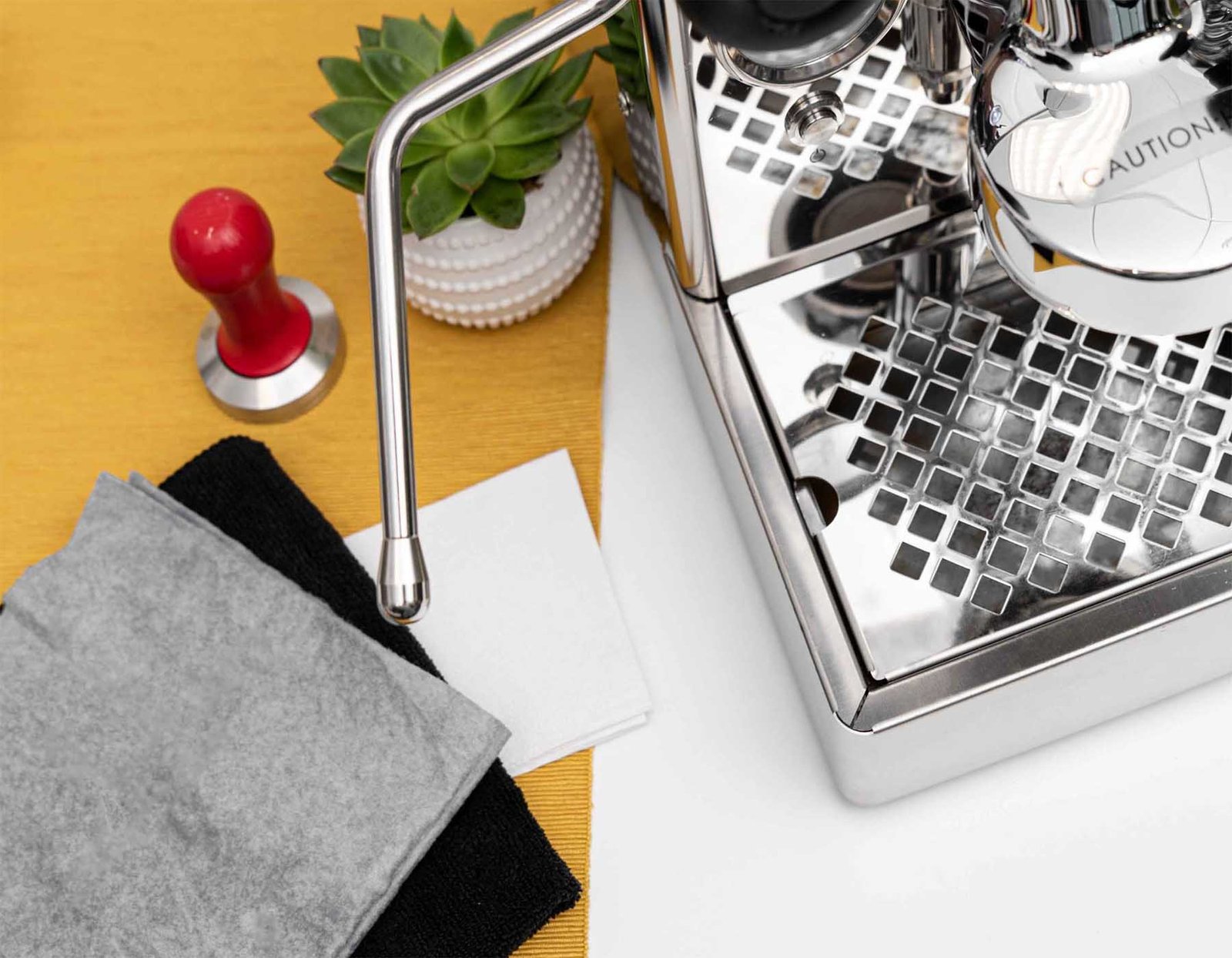 Βεβαιωθείτε ότι και το εξωτερικό της μηχανής σας φαίνεται καθαρό. Η διαδικασία παρασκευής μπορεί να έχει ως αποτέλεσμα κάποιες πιτσιλιές να πέφτουν στο σώμα ή στη σχάρα της συσκευής σας. Συνιστούμε να καθαρίσετε αυτές τις πιτσιλιές αμέσως — μόλις στεγνώσουν, θα είναι πολύ πιο δύσκολο να το κάνετε. Σίγουρα, αυτό δεν θα επηρεάσει τη γεύση του καφέ σας, αλλά μια καθαρή μηχανή καφέ είναι συνώνυμη με τον κατάλληλο σεβασμό στη διαδικασία παρασκευής και στο ίδιο το ποτό.