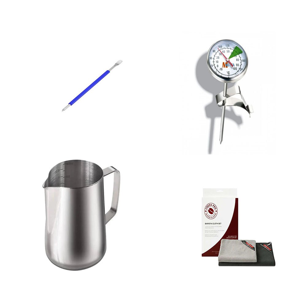 Barista Milk Set Αποτελείται από Motta θερμόμετρο 125mm,Γαλατιέρα Belogia Barista 350ml Inox,Γαλατιέρα Belogia Barista 350ml ,Crema Pro Σετ πετσετών μπαρίστα με μικροΐνες.
